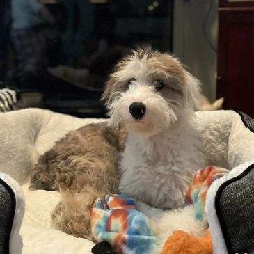 We got a mini Aussie Mountain Doodle from Sunny Ridge Doodles and have had such a great experience. Our puppy is super healthy and has an amazing temperament. He is super playful but at the same time has such a chill and relaxed demeanor. You can definitely tell he was very well loved and handled as a puppy. Even our Veterinarian commented on how he was such a good puppy at his visit and not nervous at all. We definitely recommend and are super thankful to have a such a great little guy in our family now.